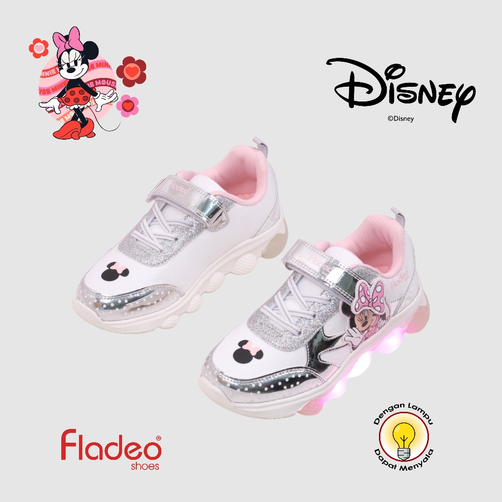 Fladeo G25/DKGSS01-1ON/Sepatu Sneakers Tali & LED Anak [ Disney Exclusive Minnie Mouse ]