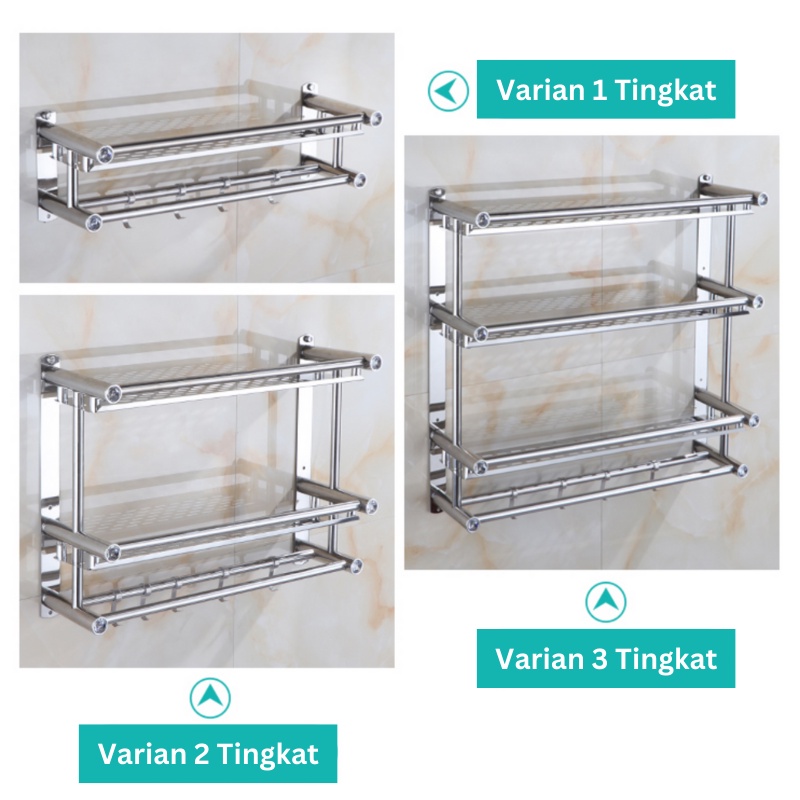Olla Hom Rak Kamar Mandi Dinding Rak Bumbu Dapur Stainls Steel