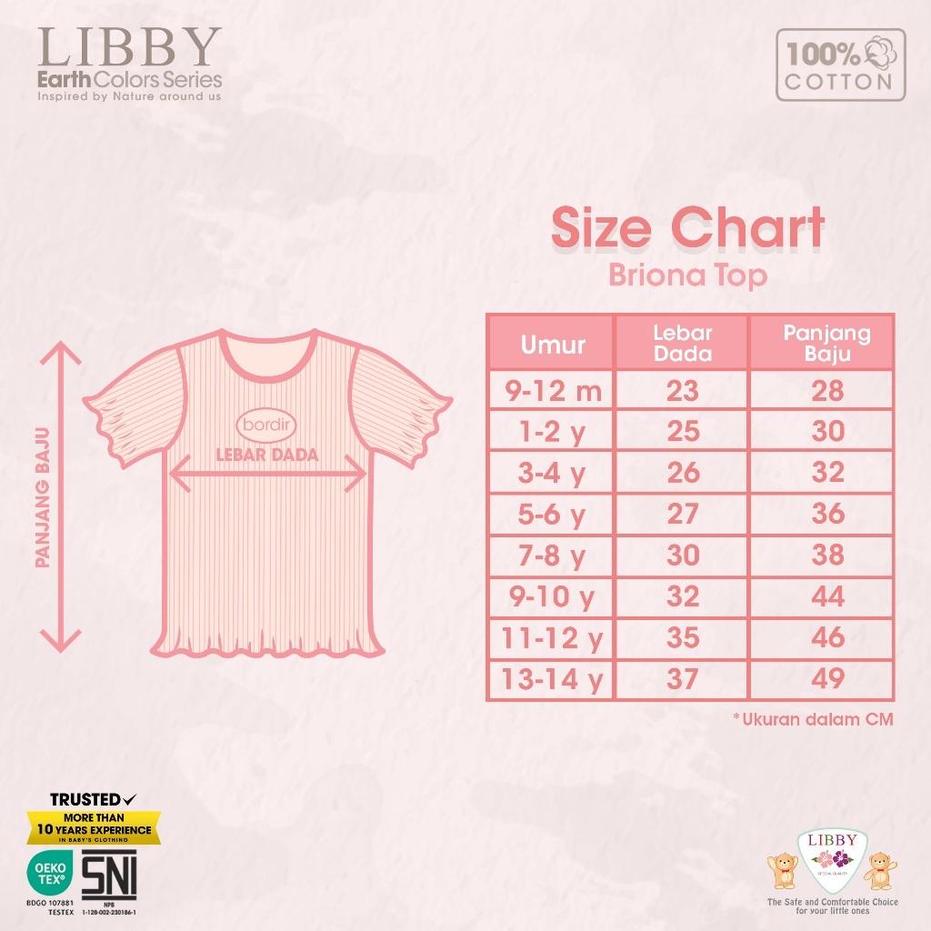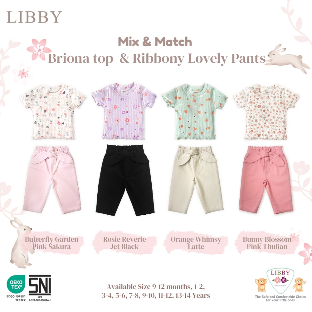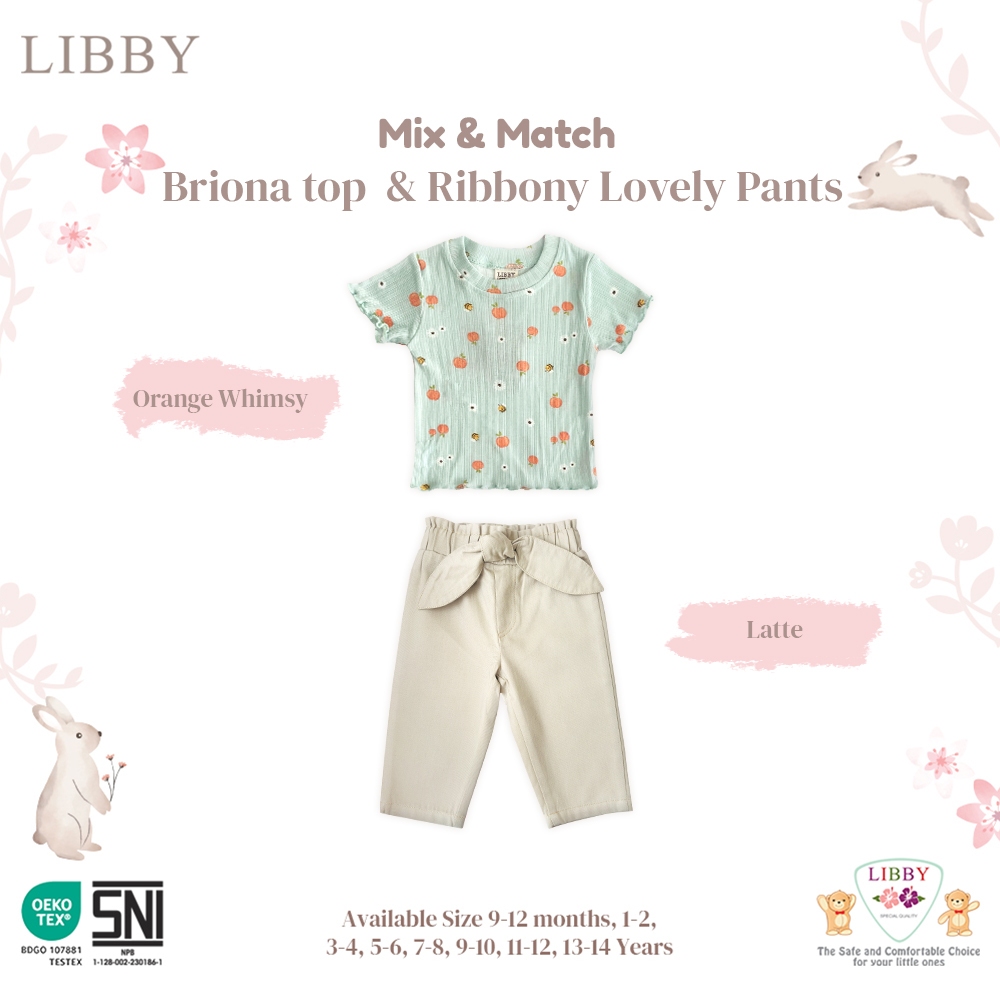LIBBY Setelan Atasan Anak Besar Perempuan Ruffle Kaos Motif Briona Top Motif & Celana Ribboby Twill Perempuan Usia 9 - 1