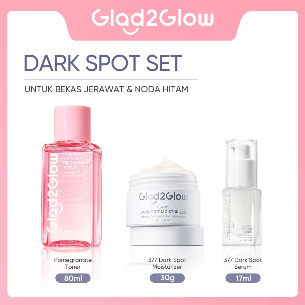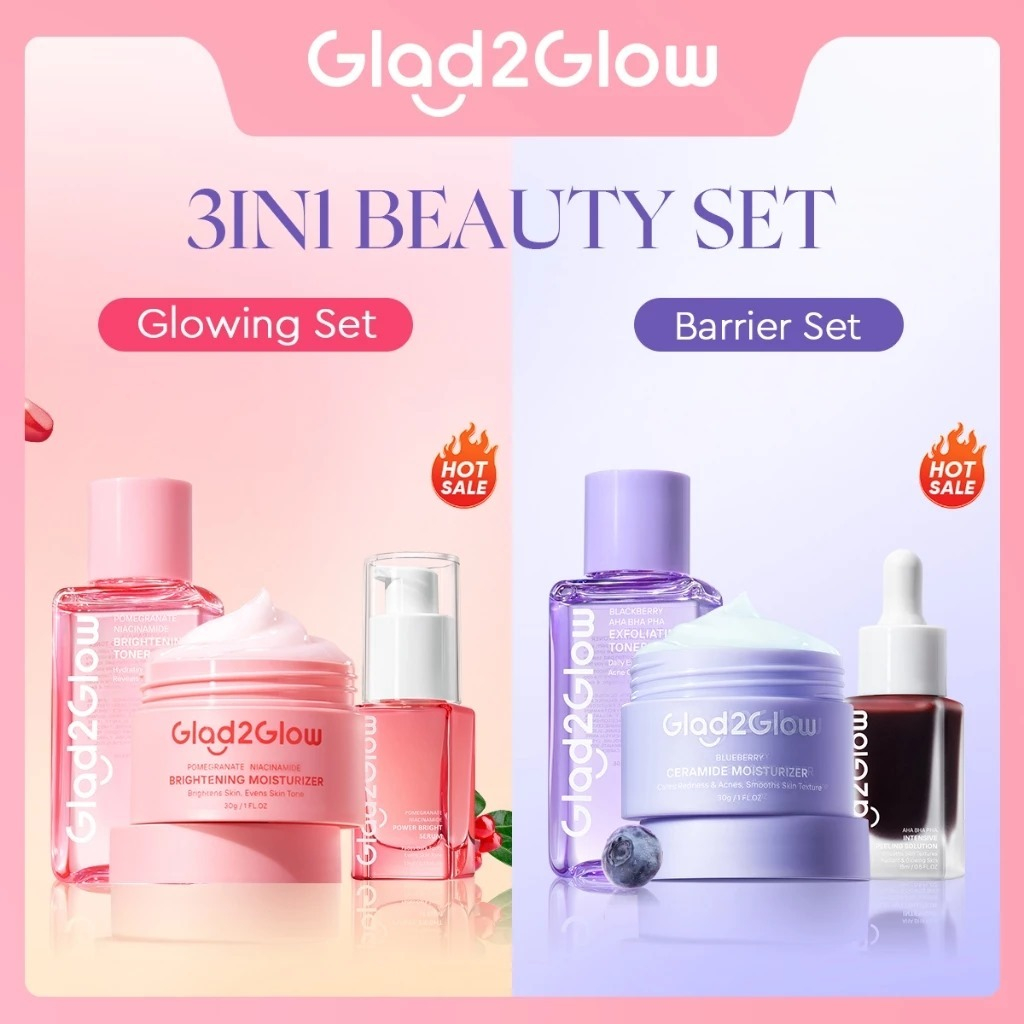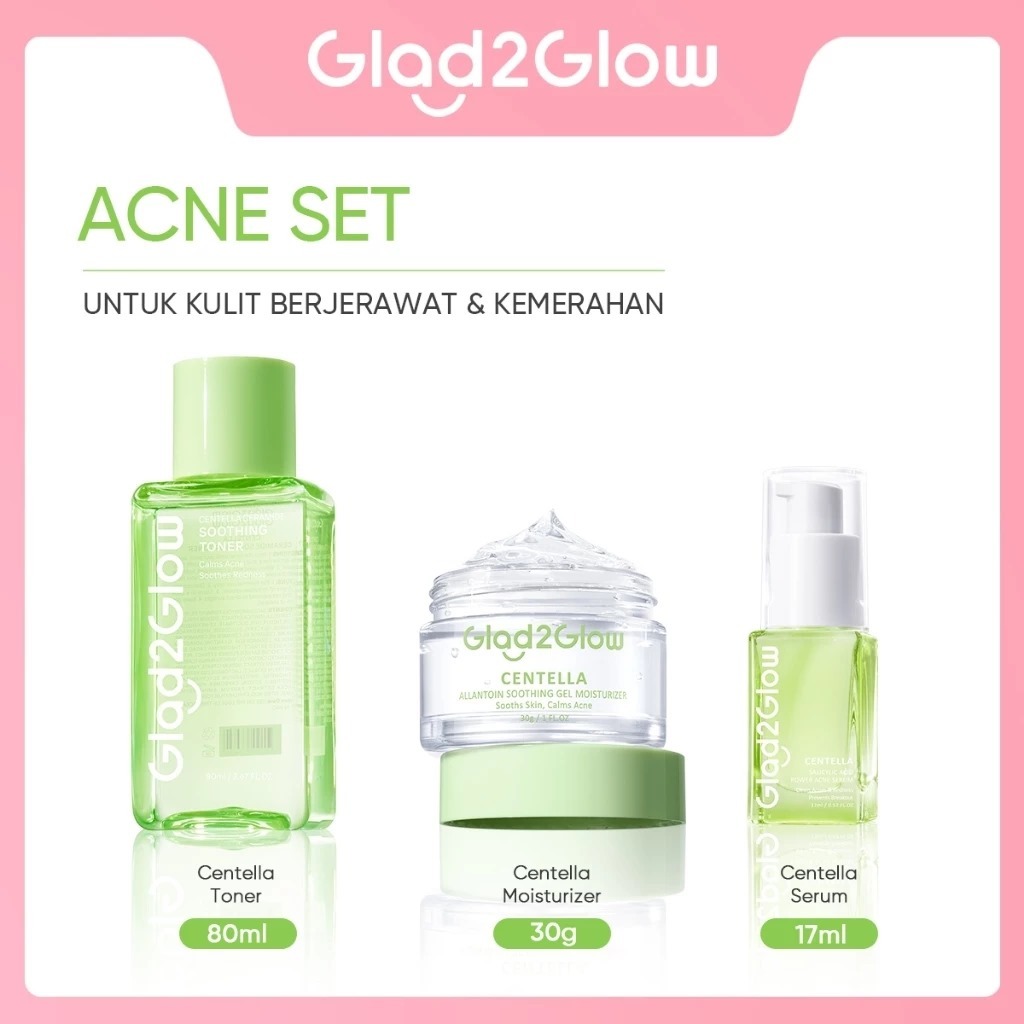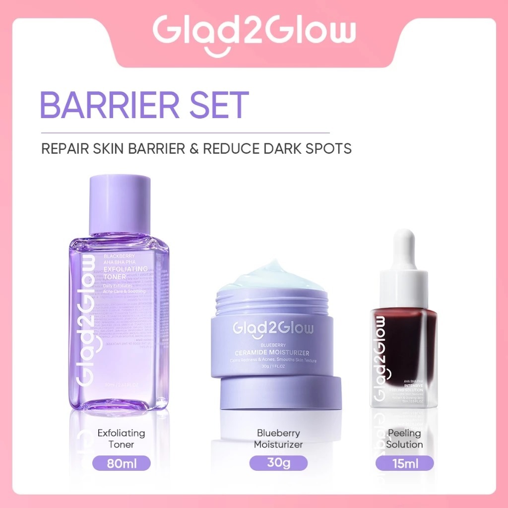 (PAKET) Glad2Glow 3in1 - Glowing Set / Barrier Set / Acne Set, Dark Spot Set / Glad 2 Glow Bundling 3pcs
