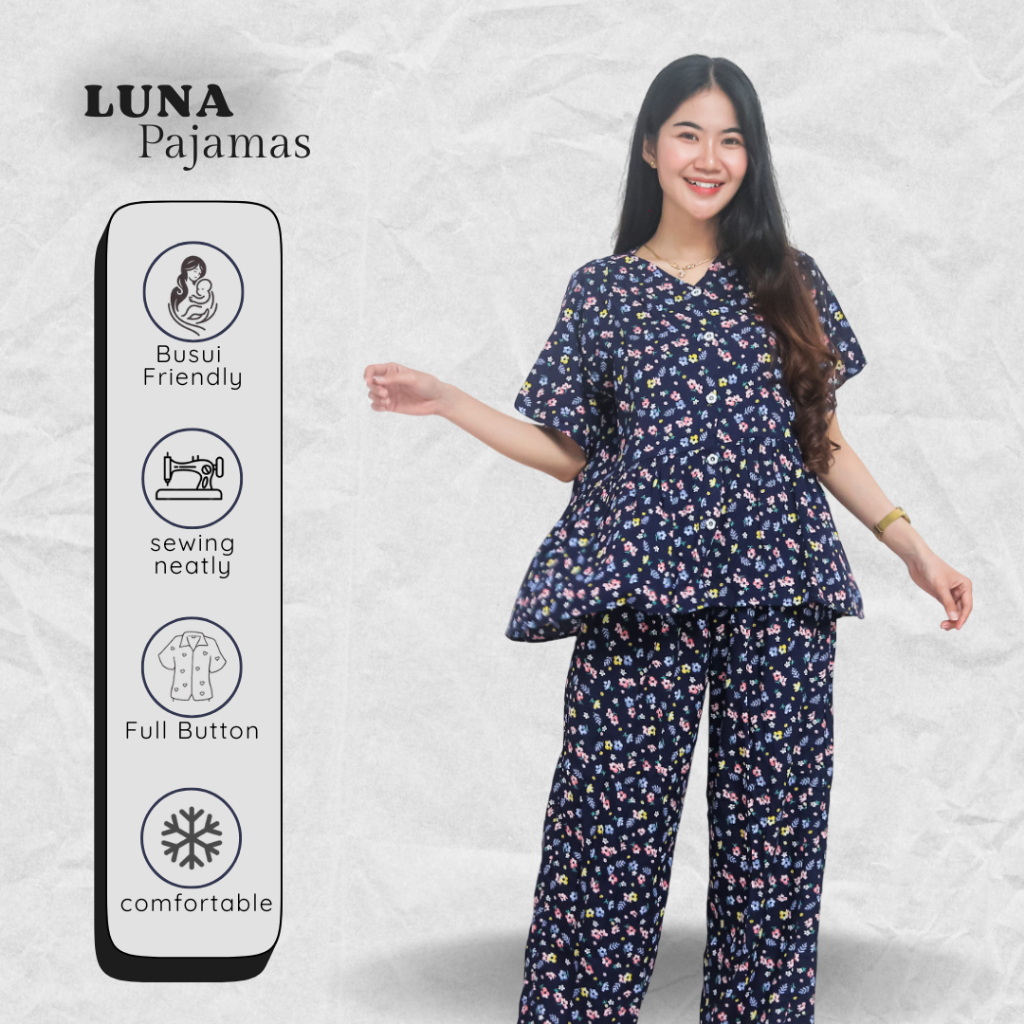 Oneset Piyama Wanita Rayon Premium Lengan Pendek Celana Panjang Motif Bunga – Nyaman Adem