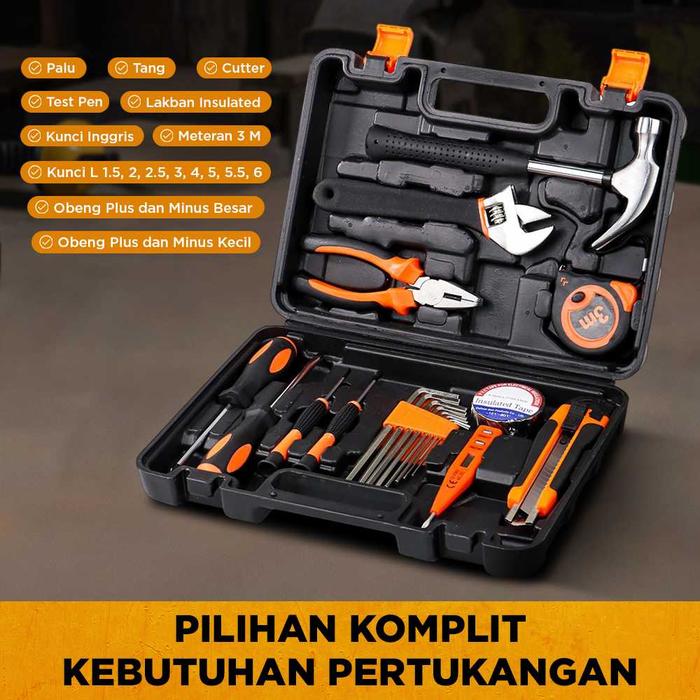 Set Alat Perkakas Tang Palu Obeng Kunci L Lakban With Box Storage 19 in 1 BG50TC bengkel kunci sock
