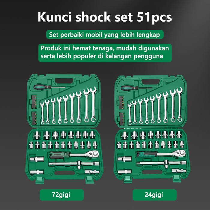 ISKU tool kit set alat kunci shock sok set 51pcs kunci ring 9pcs8-19mm