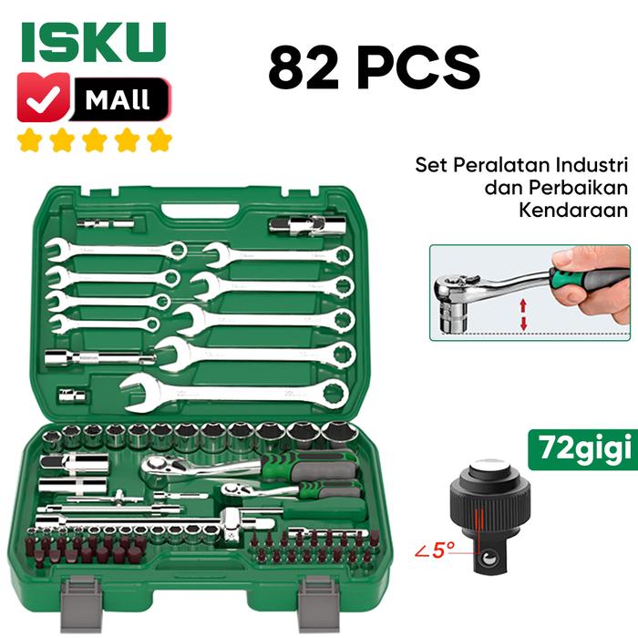 ISKU Tool Kit Set 82pcs Kunci Shock Set Termasuk Kunci Ring Pas Alat Set 8-22mm Dan 1/2 Inch Kunci