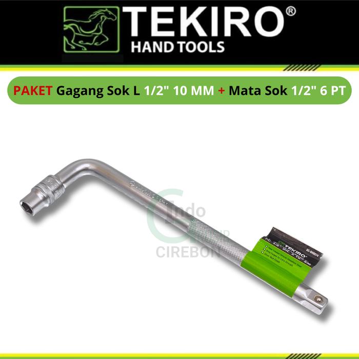 Gagang Sok L TEKIRO 1/2" 10mm + Mata Sok 1/2" 6PT Offset Handle PAKET Kunci Set