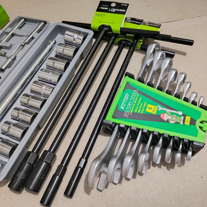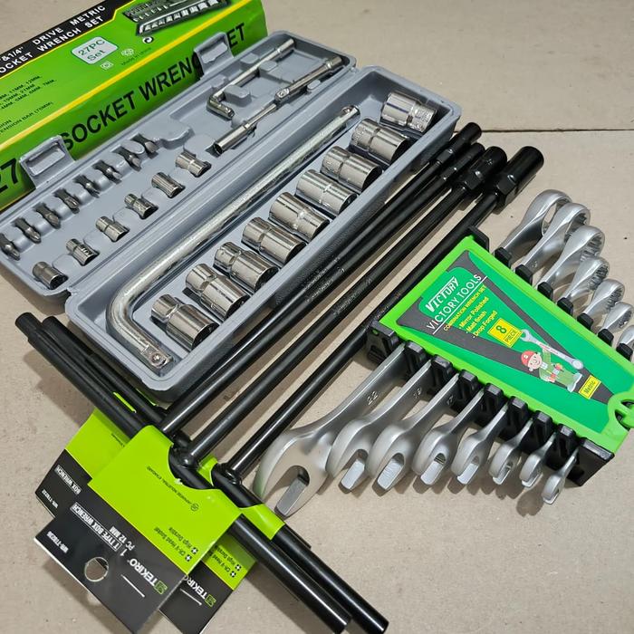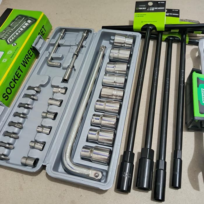 Tool Kit Tekiro Kunci T 4 Pcs 8-10-12-14mm + Kunci Shock 27 Pcs + Kunci Ring Pas 1Set + Kunci