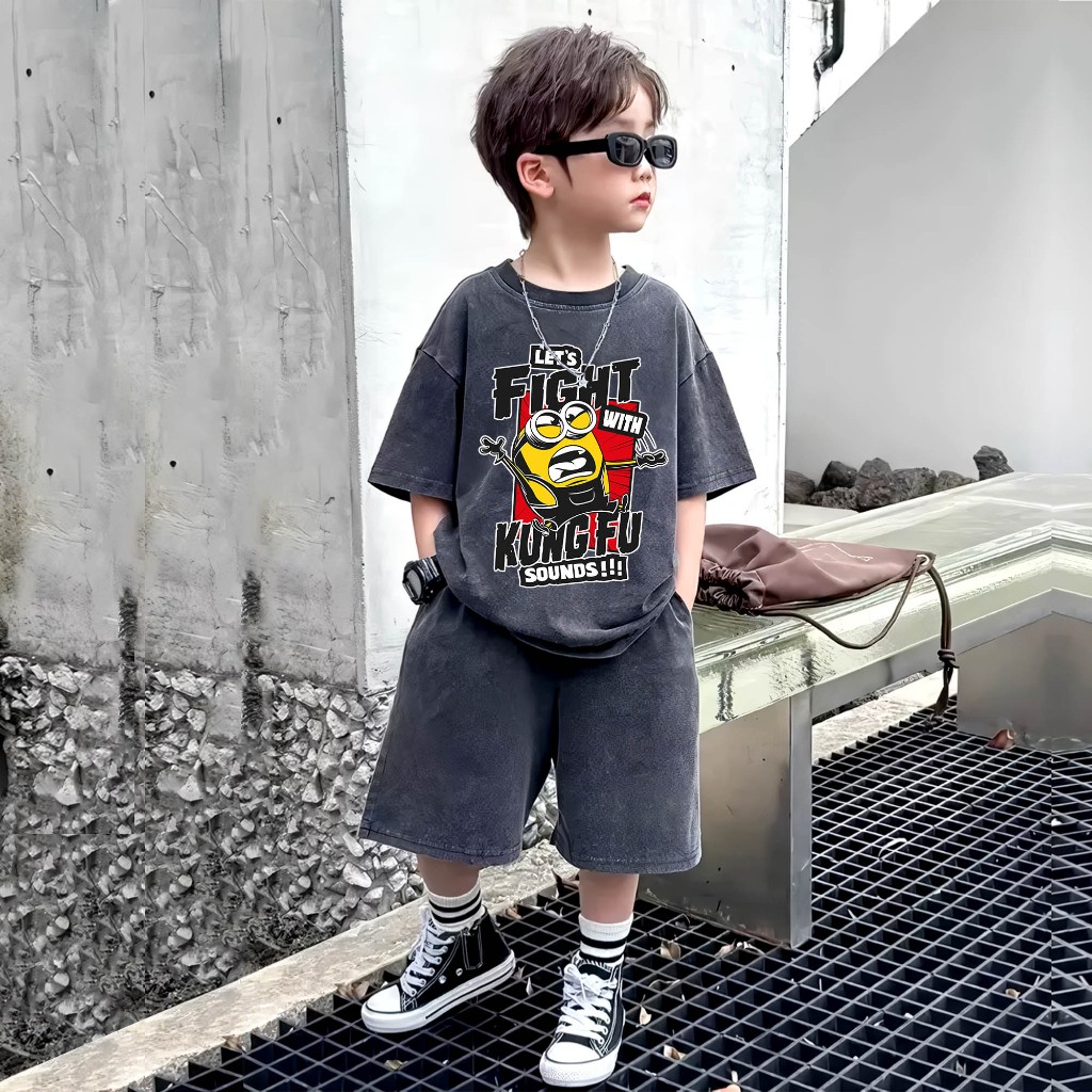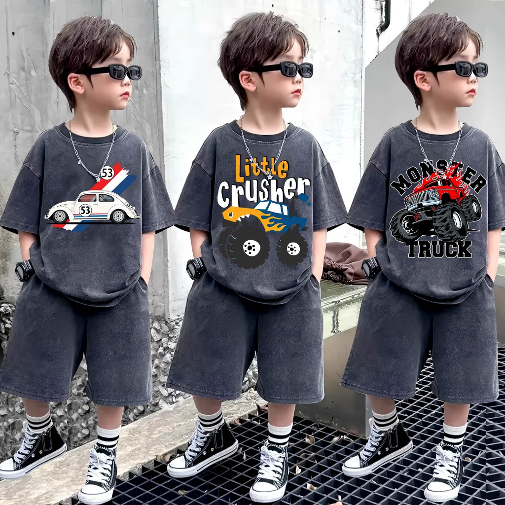 Setelan Anak Stone Wash Set Distro usia 1-10 thn Basic Anak laki dan perempuan katun combet 24s poro car mobil Murah Gra