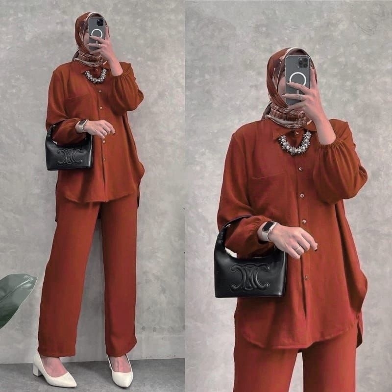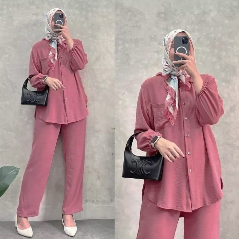 MA - One Set Wanita Kekinian Setelan Kemeja M L XL Lengan Karet