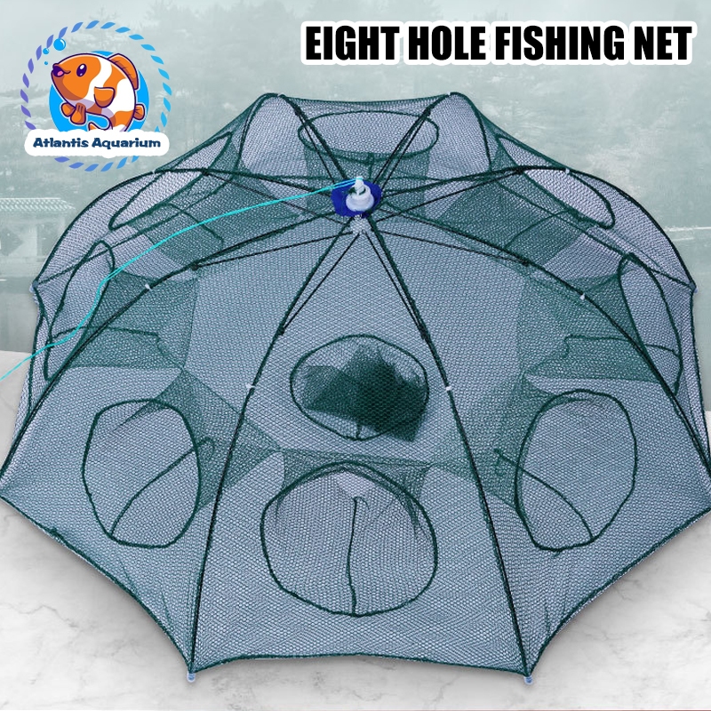 【8 Lubang】Trap Cage Umbrella Net – Perangkap Ikan, Udang, Kepiting, Lele, Lobster untuk Sungai, Laut & Danau