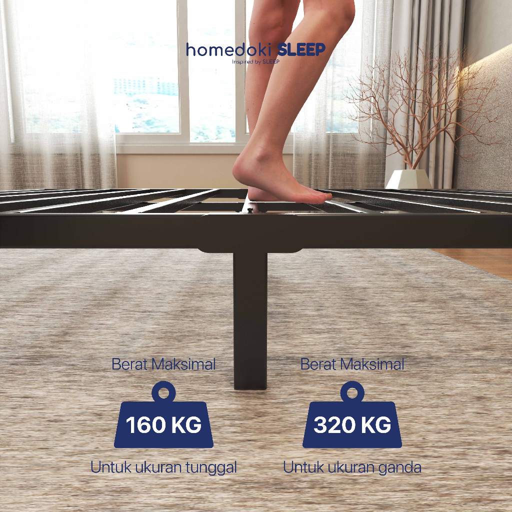 Homedoki Basicbed Series/ Tatakan Divan Tempat Tidur / Yelena Ranjang Tidur / Divan Dipan Tempat Tidur / Kai Ranjang Besi Industrial Bed In a Box
