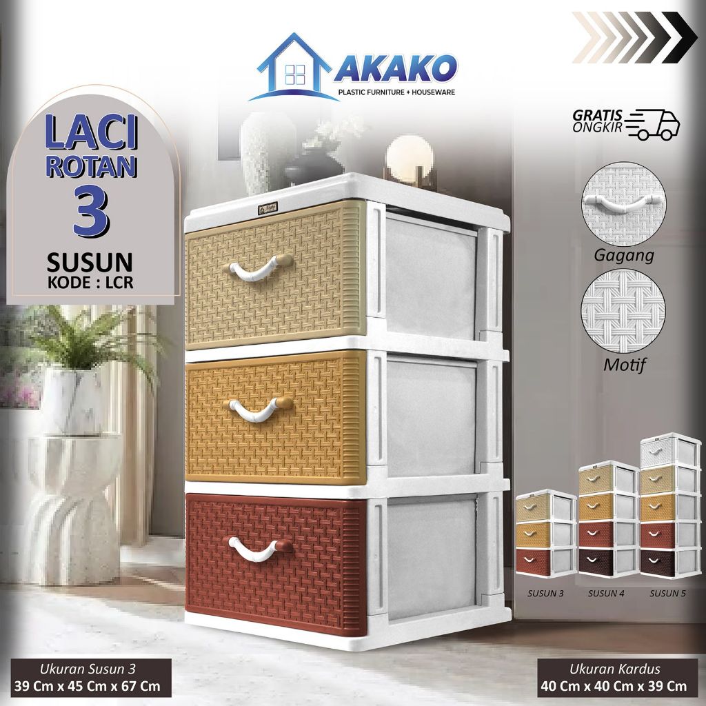 AKAKO - Lemari Pakaian Laci Plastik Motif Rotan Susun 5 - NEW ITEM (e : LSM 5)