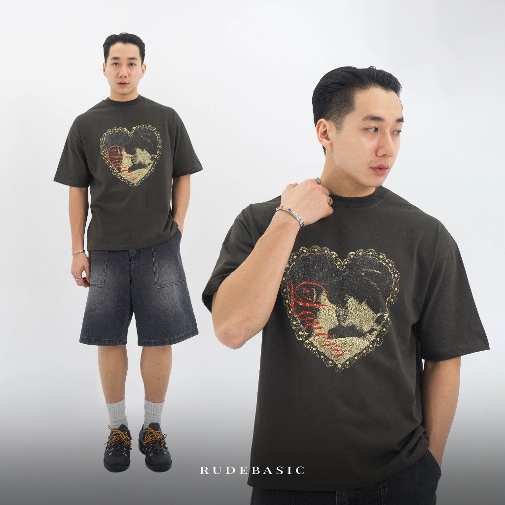 RUDEBASIC - Lovers Oversized Tee | Cotton Heavy Weight | Kaos Oversize | Kaos Abu Pria | Kaos Graphic
