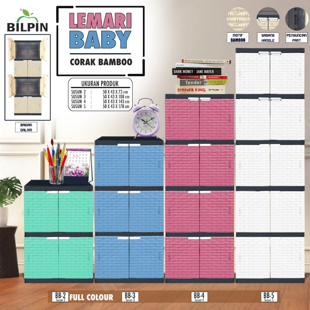 AKAKO - LEMARI PAKAIAN PLASTIK BABY BILPIN MOTIF ROTAN SUSUN 4 DAN 5