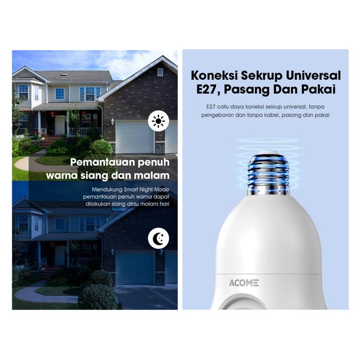 ACOME APC8S SMART IP WIFI CAMERA CCTV 2.5K 1440P KAMERA BOHLAM E27