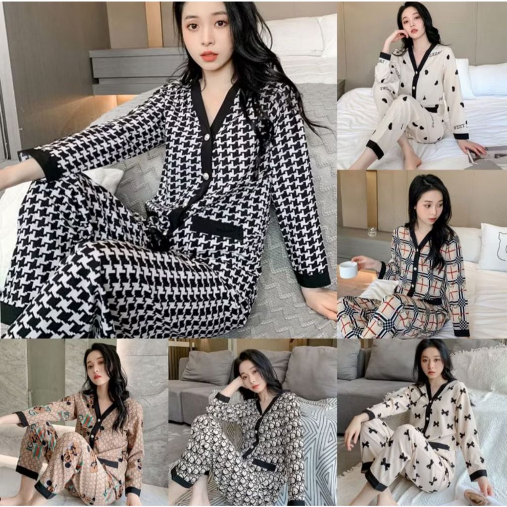 Cessy Piyama Wanita Import Bahan Satin Premium Lengan Celana Panjang Full Kancing Pearl 005