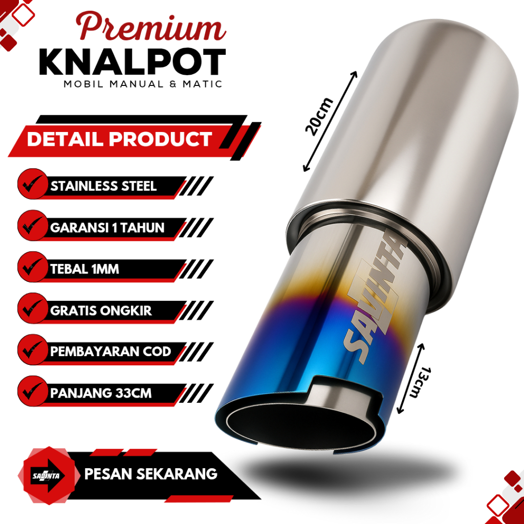 Savinta Knalpot Racing Mobil XELO Blue Stainles Bass Size 33cm
