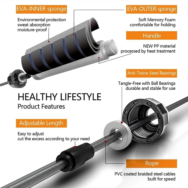 Vardour TALI SKIPPING PRO BEARING 6 BOLA Kawat Baja 3M Bisa Diatur 1 3kg+ Pegangan Anti Slip UNTUK FITNESS BOXING