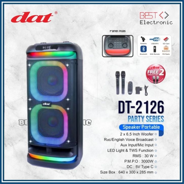 SPEAKER AKTIF PORTABLE DUO 6.5 INCH DAT DT 2126 PARTY DT2126 DT-2126 BLUETOOTH