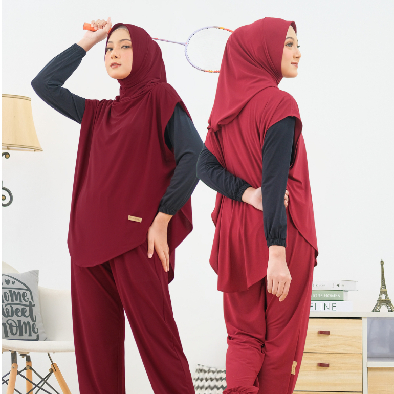 HELAIRINDU - Setelan Hijab Olahraga Wanita Outer Hijab dan Celana Bahan Royal Jersey