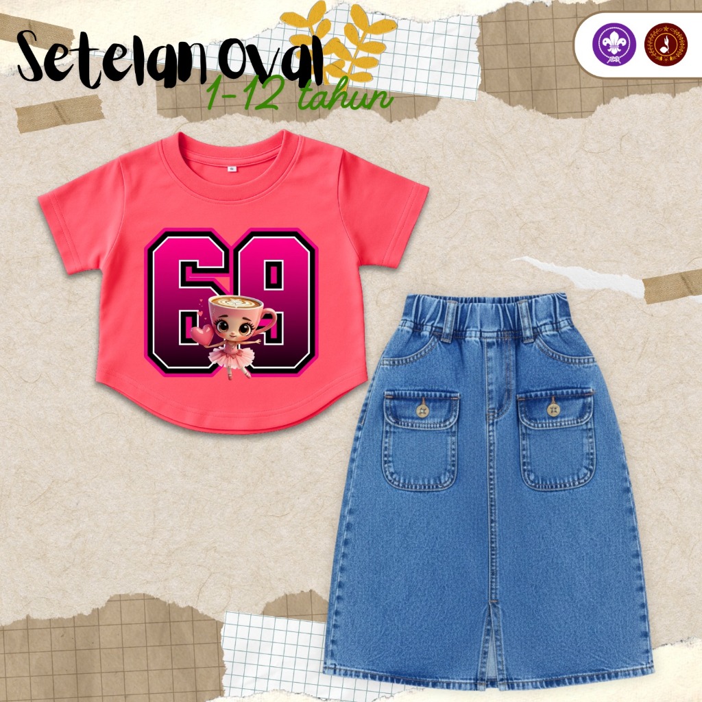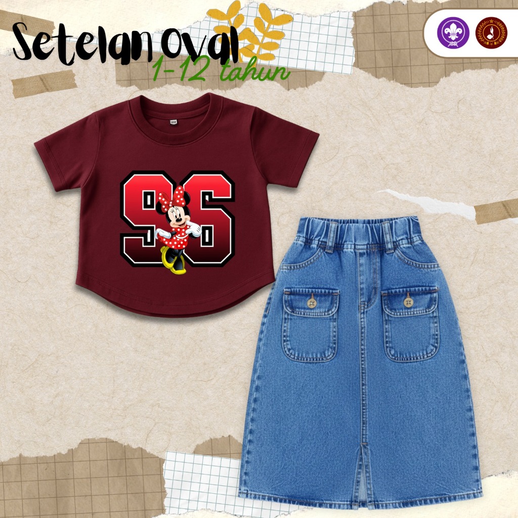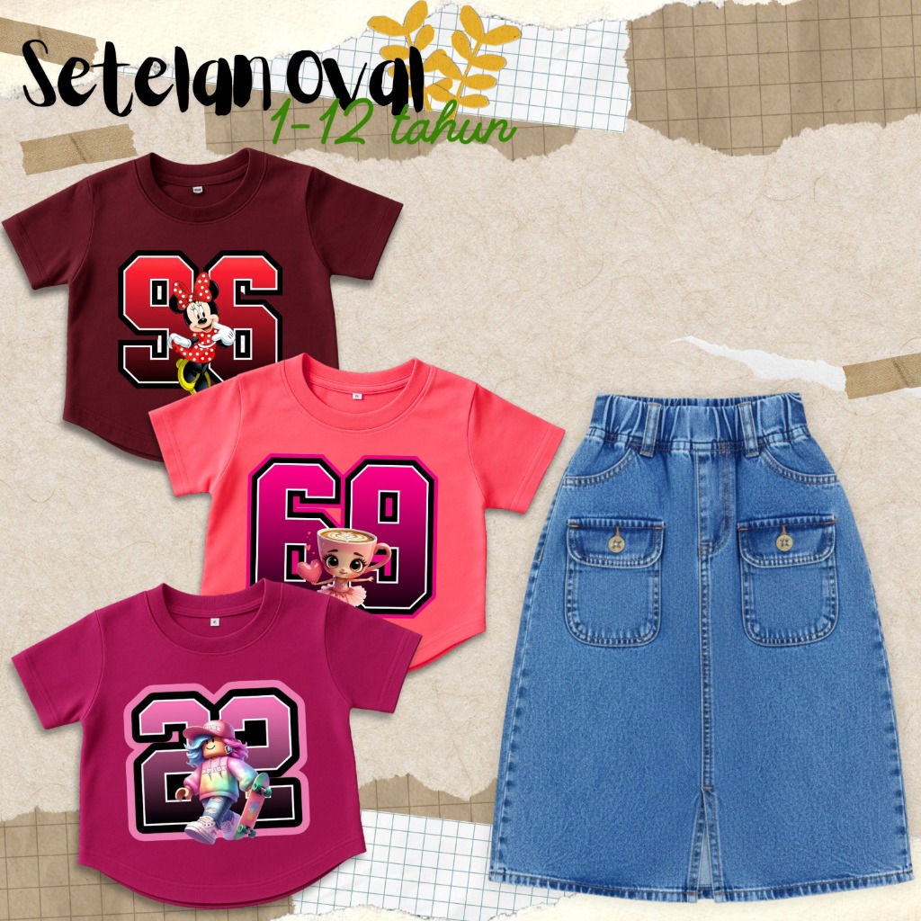 SETELAN ROK JEANS SAKU DAN KAOS OVAL KEKINIAN MOTIF ROBLOX / OUTFIT OOTD CASUAL ANAK Murah Gratis Ongkir