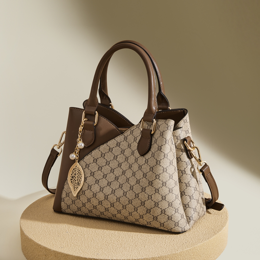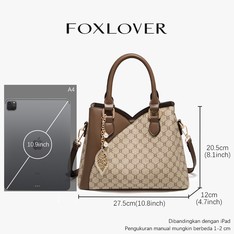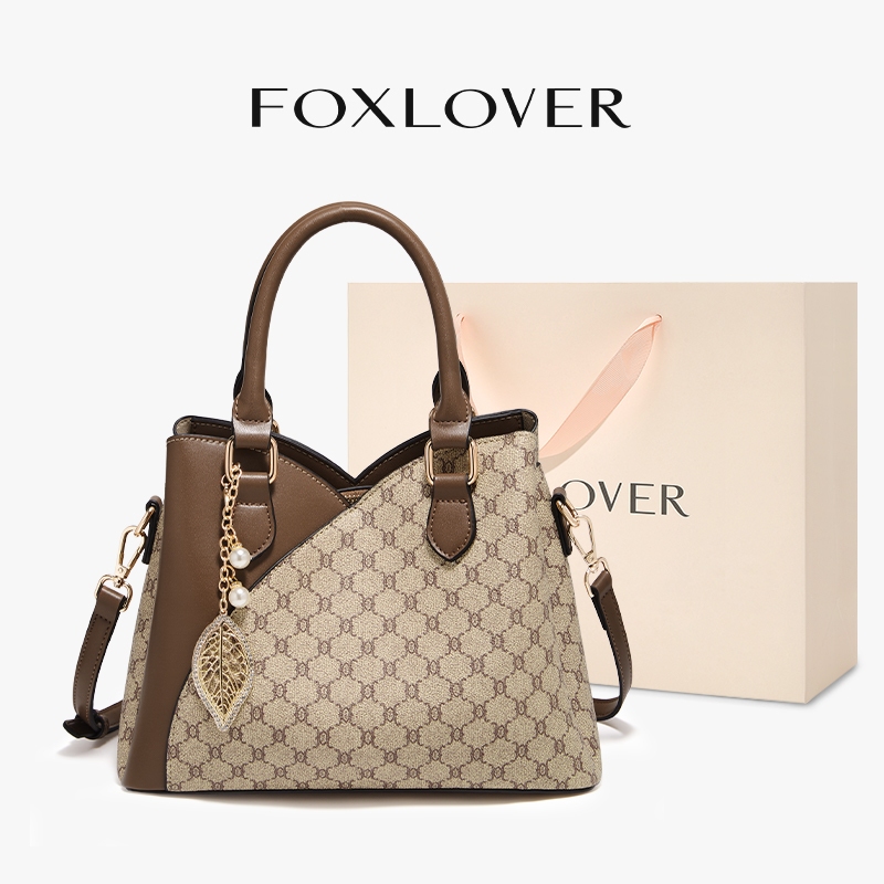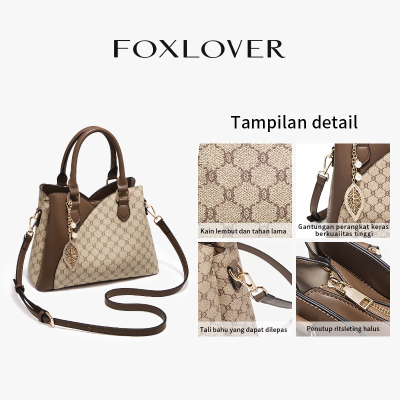 FOXLOVER Tas Tote Motif Double Handle dengan Coklat