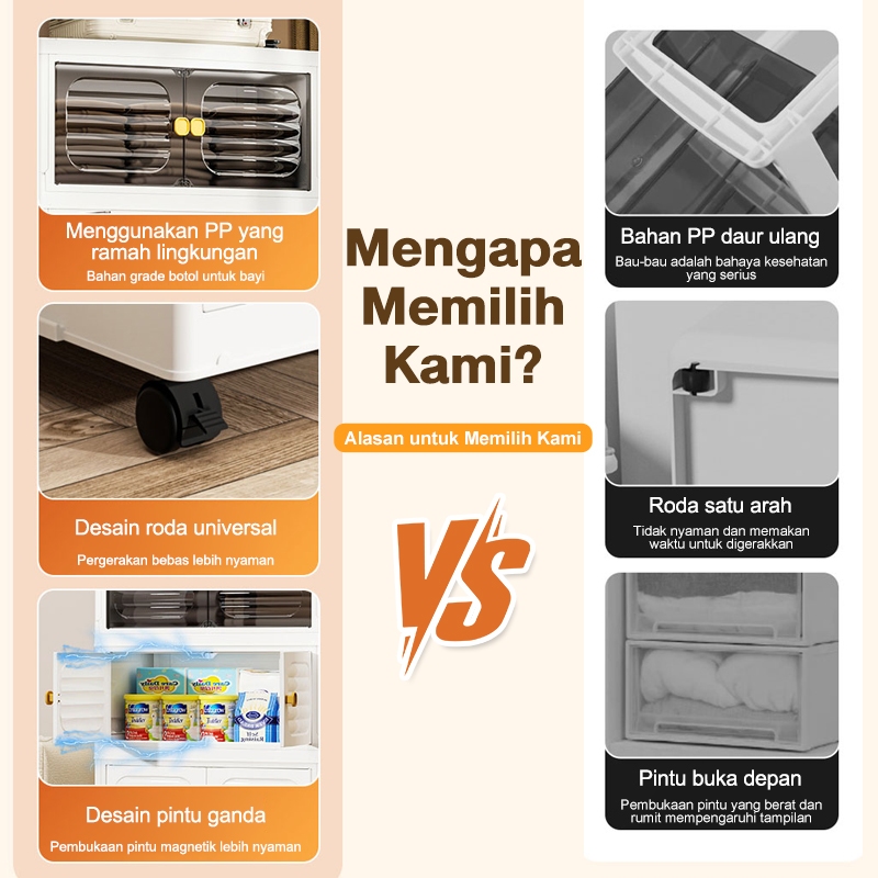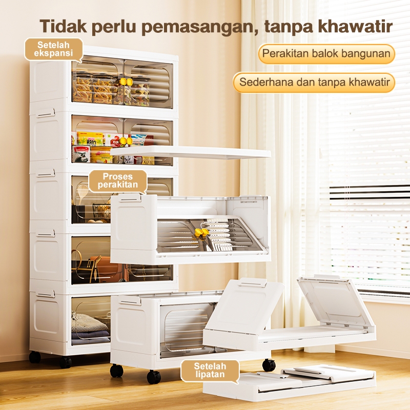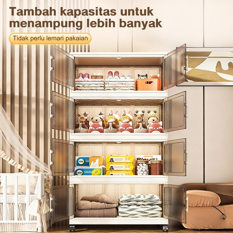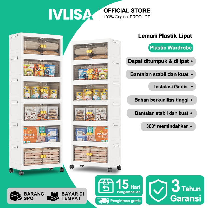 IVLISA Lemari Plastik Lipat Penyimpanan Serbaguna 3/4/5/6 Susun Rak Baju Multifungsi, Organizer Hemat Ruang, Katrol Senyap, Anti Debu