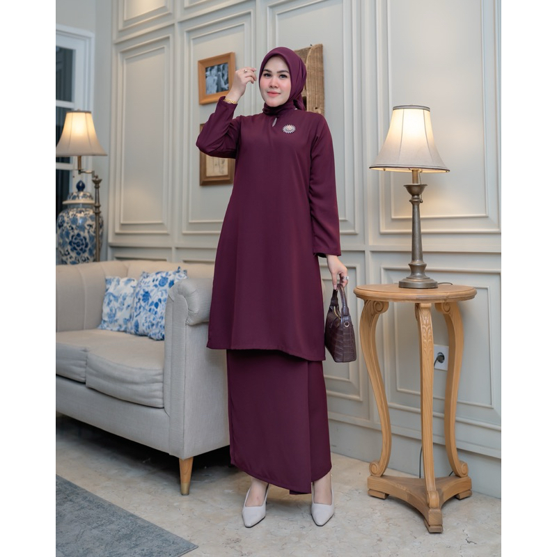 Dkhayru Store - Setelan Kurung Melayu Aluna Polos Setelan Rok Kurung Polos Model Melayu Stelan Guru