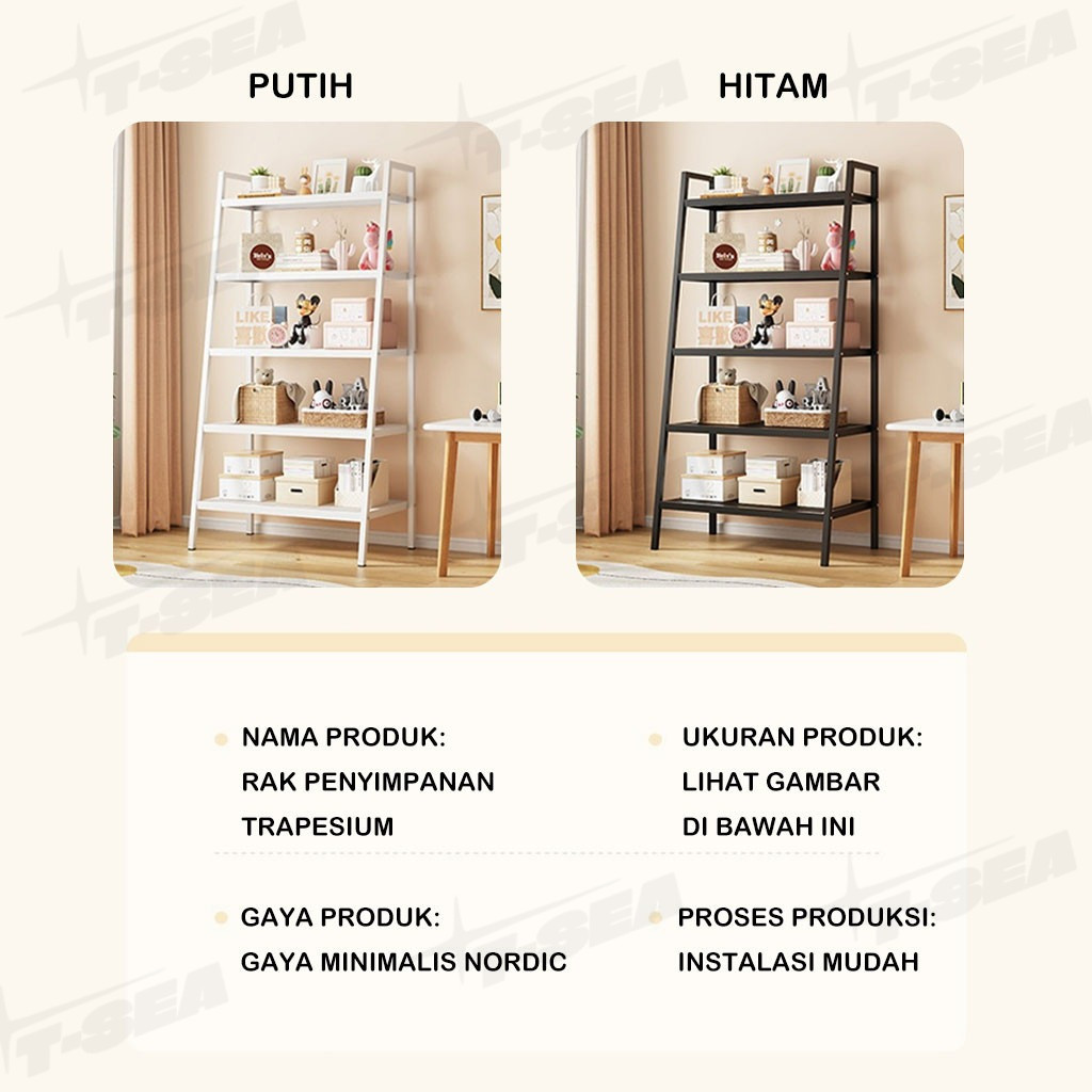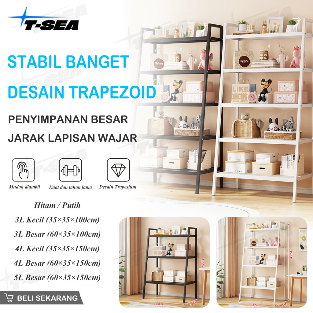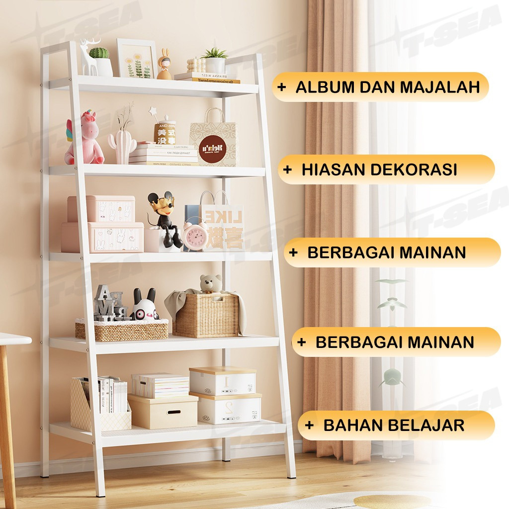 T-SEA 3/4/5Rak Buku Rak Ruang Tamu Serbaguna Rak Buku Minimalis Aesthetic Rak Besi Rak Bunga