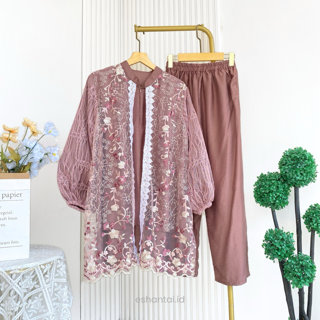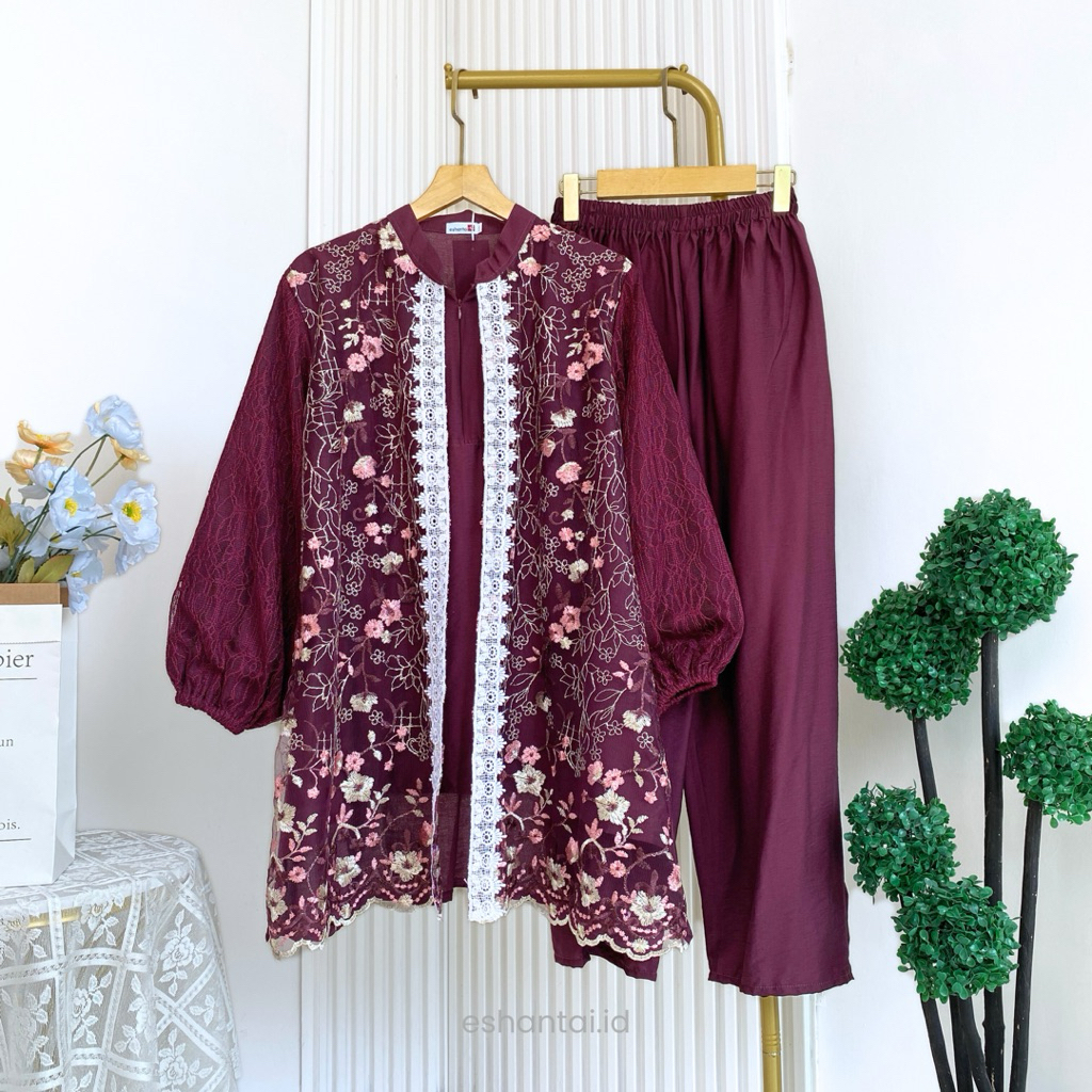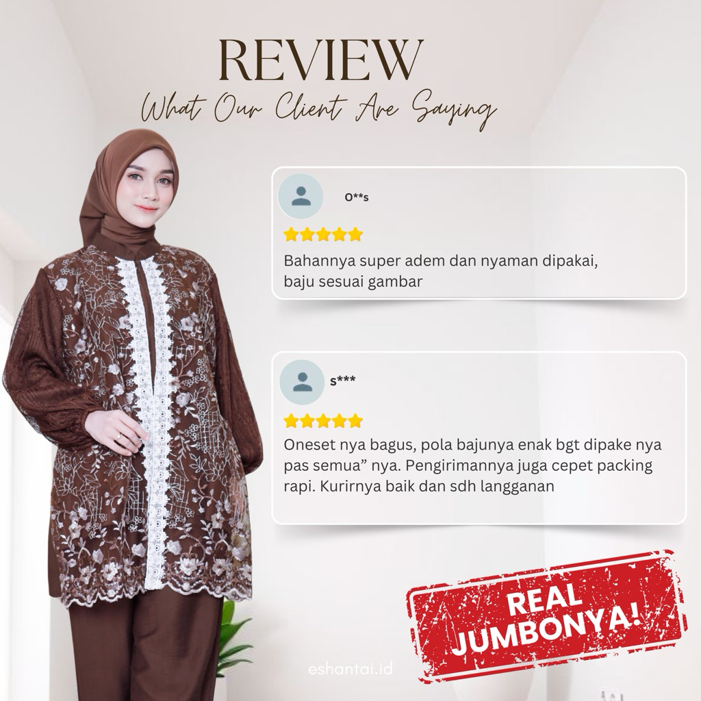 Seiza LD 120 dan 140 One Set JUMBO Brokat Chantily Mewah Setelan Seiza Big Size XL–5XL + Inner Soft Katun + Celana Kulot Bumil & Busui