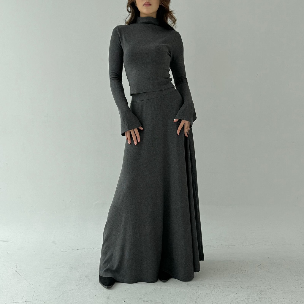 SAGITTARIUS SET Setelan Wanita Long Sleeve Rok Panjang Ribbed Knit Set Crop Top Maxi Skirt Korean Long Skirt Long Sleeve