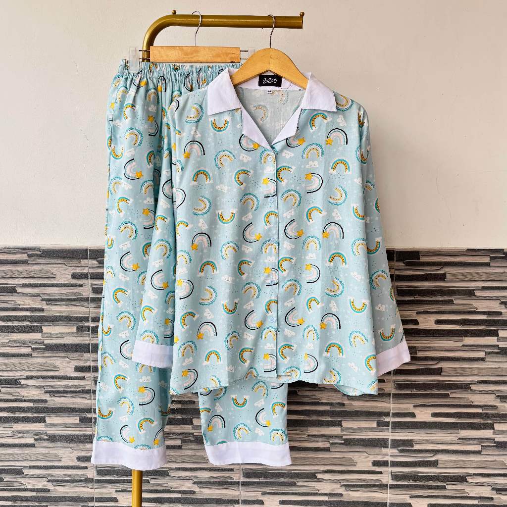 Ld 120 Dan 140 Baju One Set Setelan Wanita Atasan Tangan Panjang Celana Panjang List Kombinasi Berkerah Rayon Premium Super Jumbo Motif