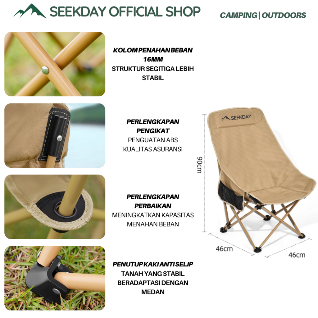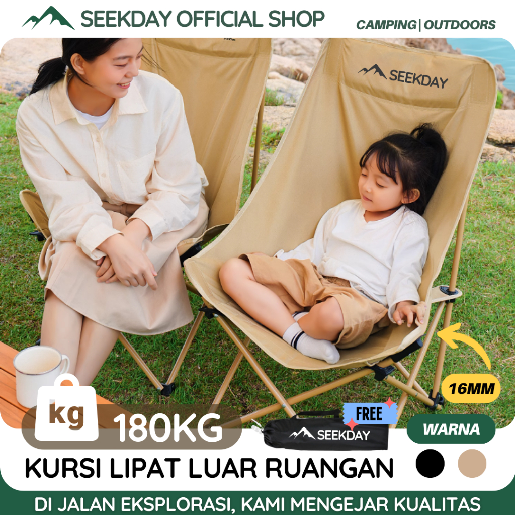 Seekday Kursi Lipat Sandaran Outdoor Tinggi Dengan Sandaran Kepala Busa Kursi Camping Kuat/Lebar/Tebal Beban 180kg