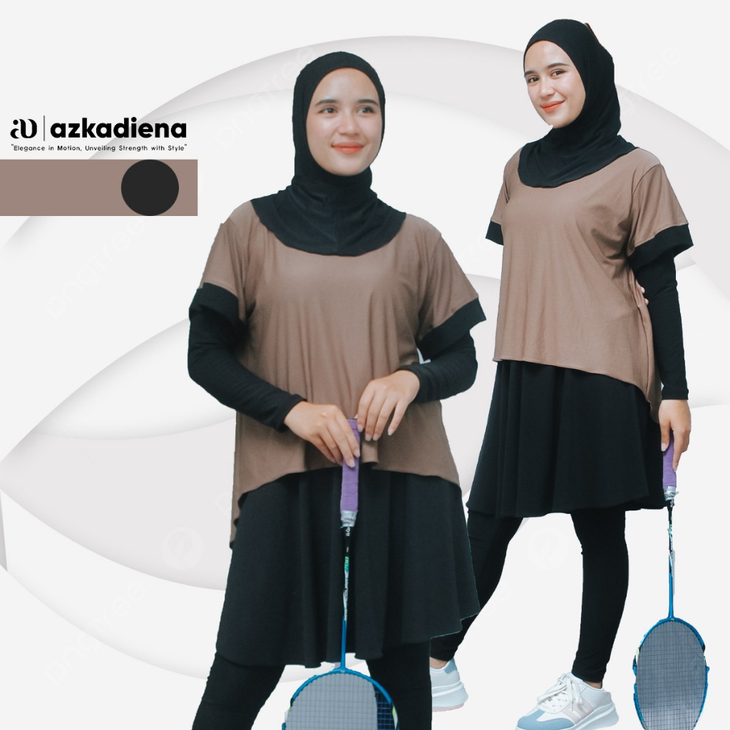 Azkadiena Setelan Olahraga Agnia Wanita Crop Legging Rok Set Jilbab Hitam All size Bahan Jersey