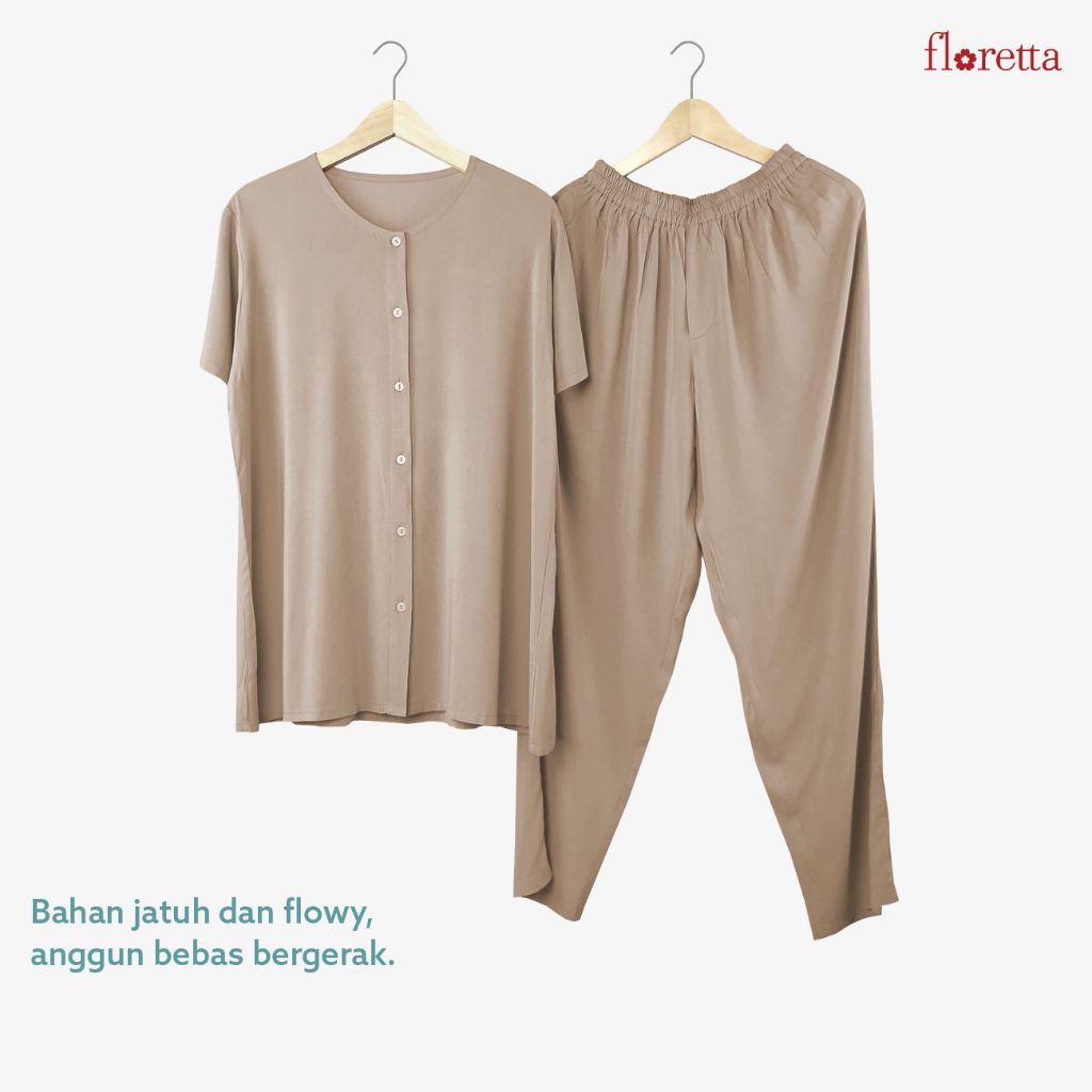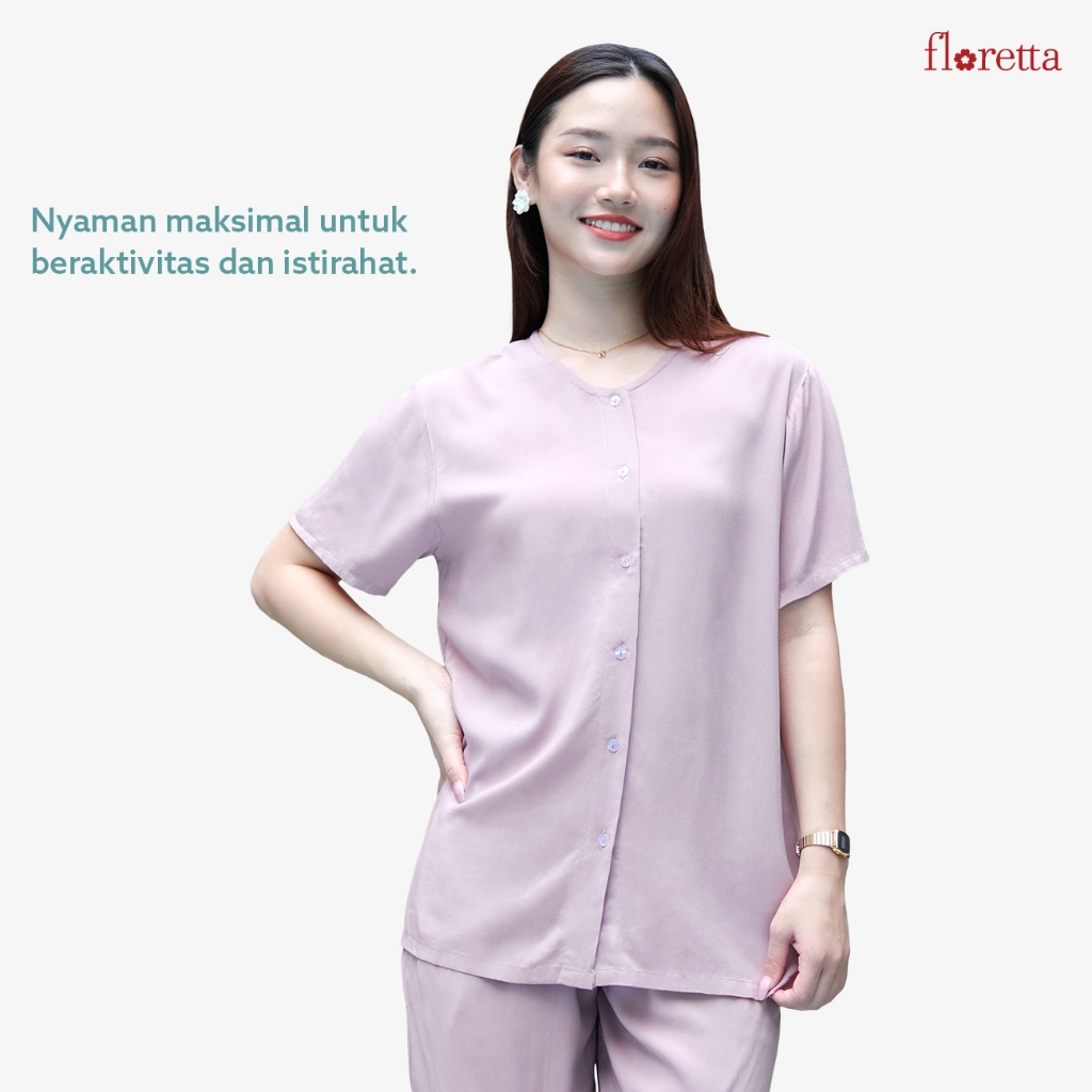 Baju Tidur Wanita Piyama One Set Lengan Pendek Rayon Busui Momo Floretta