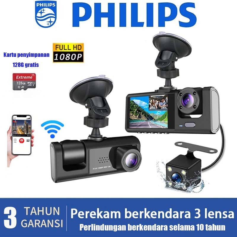 Philips Dashcam Mobil Gratis 128GB 1920HD WIFI Bisa Nyambung Ke HP Pengawasan parkir 24 jam Menambahkan Fungsi penglihat
