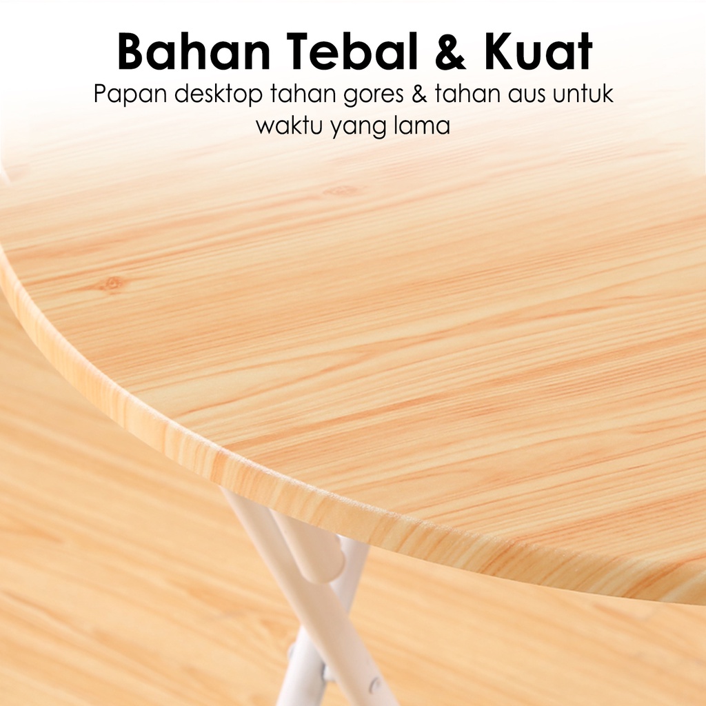 Meja Lipat Portable Meja Lipat Bulat Diameter 60cm Meja Cafe Meja Makan Serbaguna Bahan Besi Fiberboard Tebal