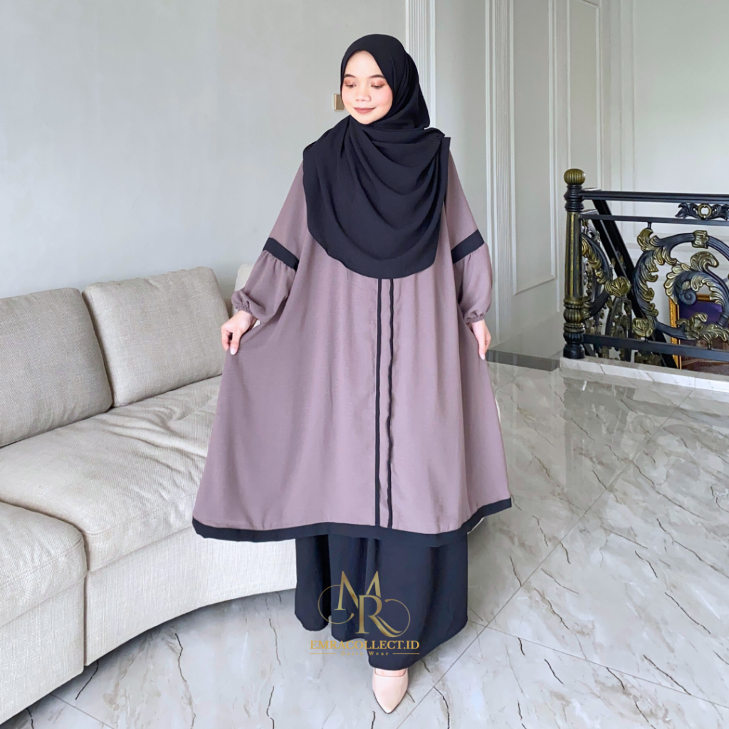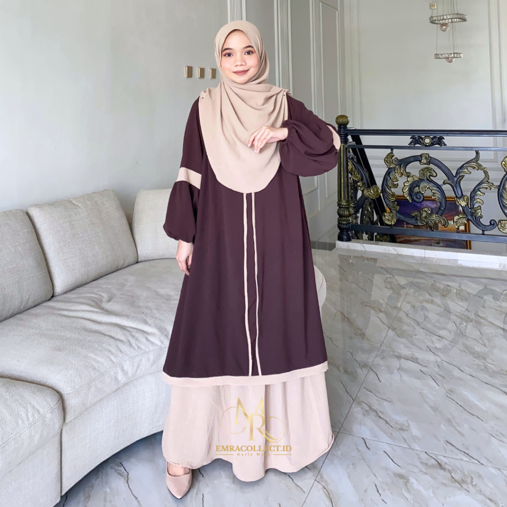 Oneset Nayyara Setelan Rok tunik Syar’i Jumbo Ld 120 Set Tunik Malaya Terbaru - Emracollect.id