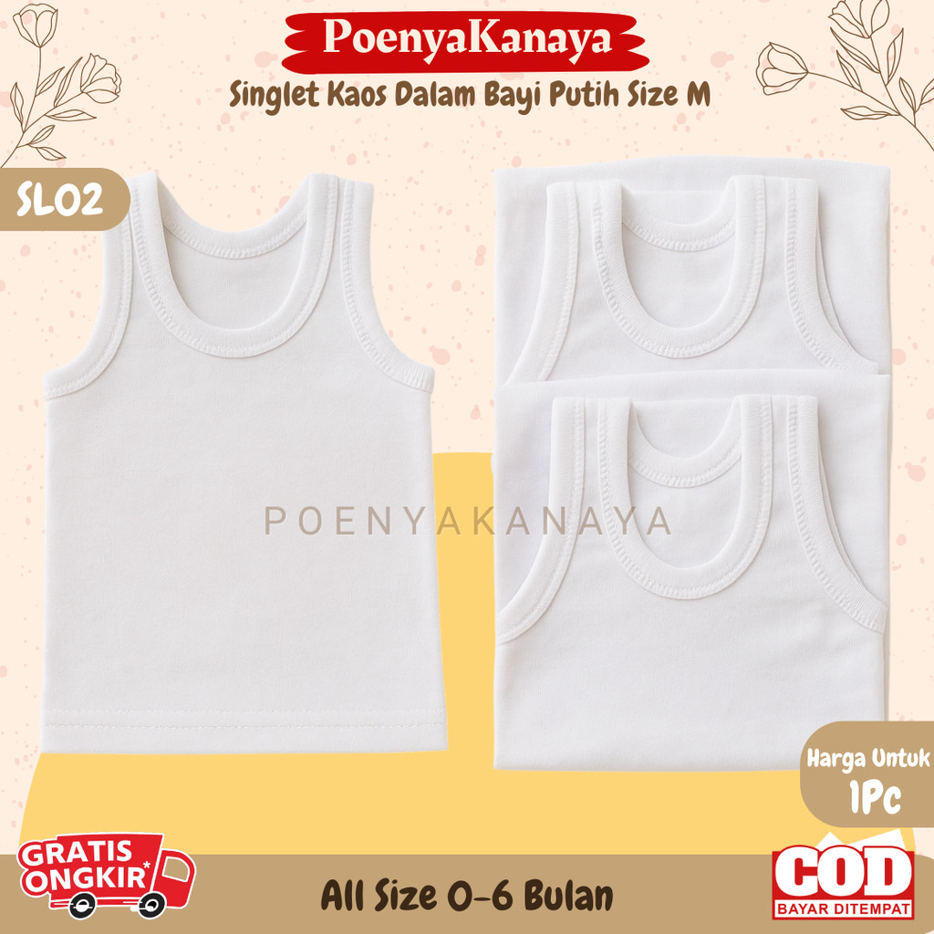 NEW Singlet Kaos Dalam Bayi Putih Size M SL02 Murah Gratis Ongkir