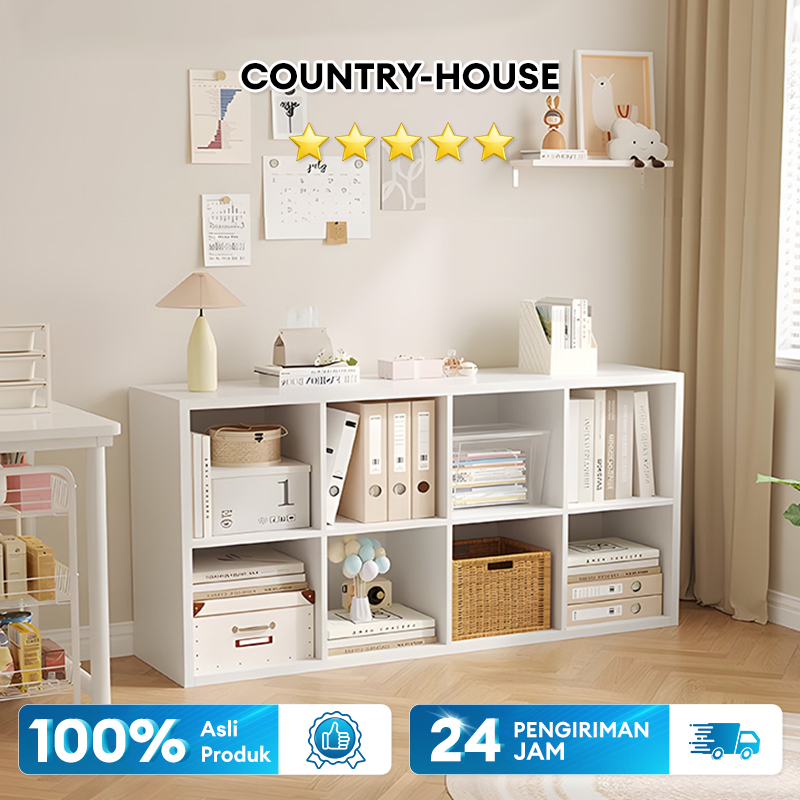 COUNTRY-HOUSE Rak Buku Minimalis Putih Puren Kayu 8 Ruang Serbaguna Lantai Rak Pajangan