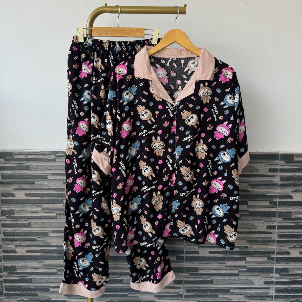 Ld 120 Dan 140 Baju One Set Setelan Wanita Atasan Tangan Pendek Celana Panjang List Kombinasi Berkerah Rayon Premium Super Jumbo Motif