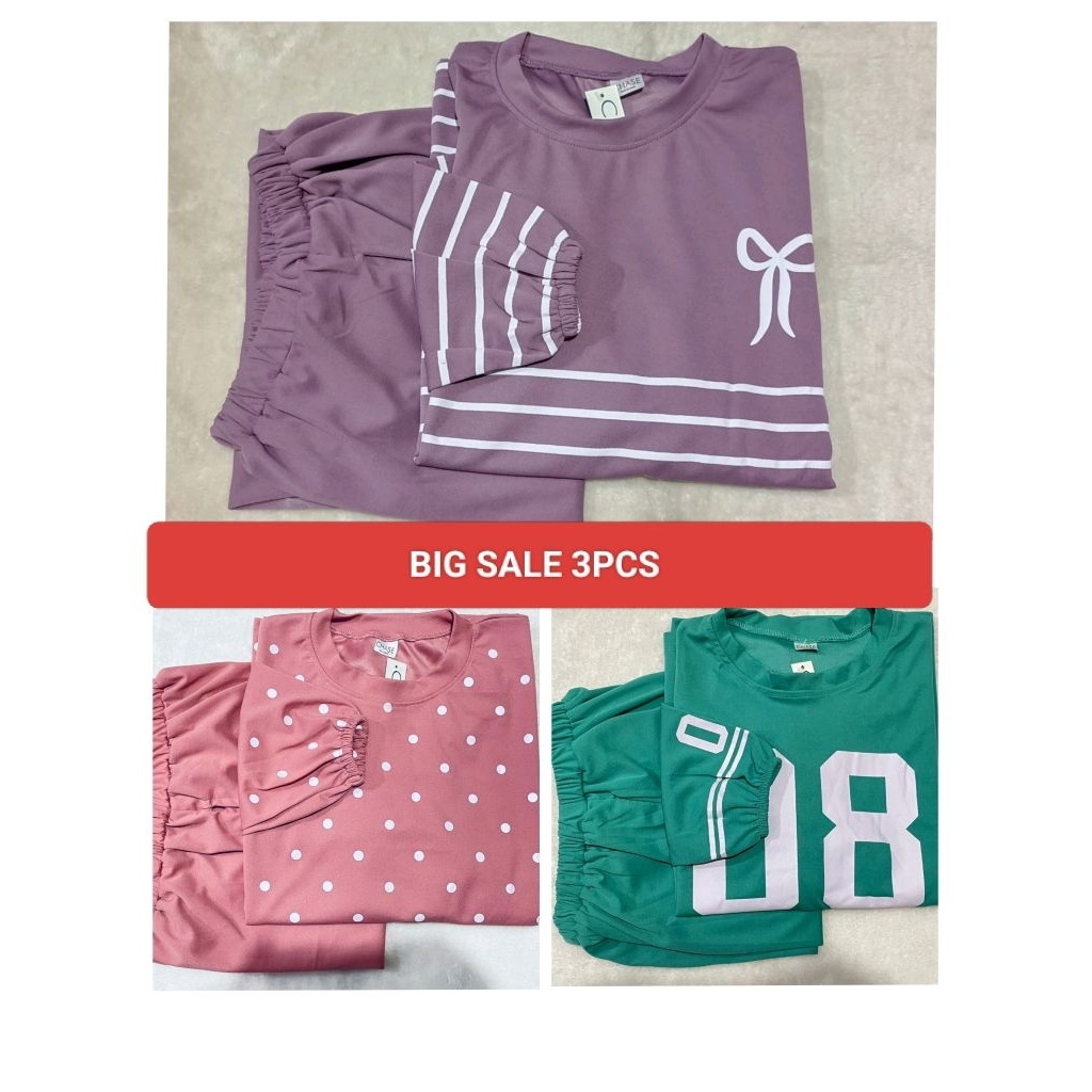 lover.fashion88 BIG SALE 3PCS Setelan Wanita Jumbo PP ANGKA 08 - POLKADOT -SALUR PITA LD120