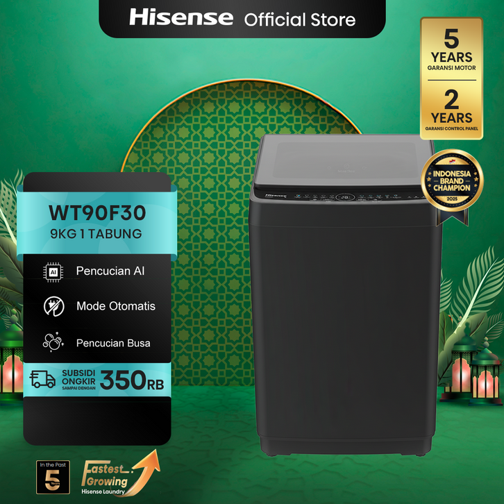 Hisense Mesin Cuci 1 Tabung Top Loading 9KG Washing Machine WT90F30 - Azure Ink - Memory Backup - Load Detection