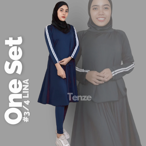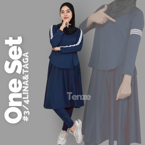Setelan Olagraga Wanita Legging Rok Bawah Lutut X Atasan List