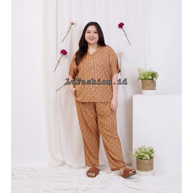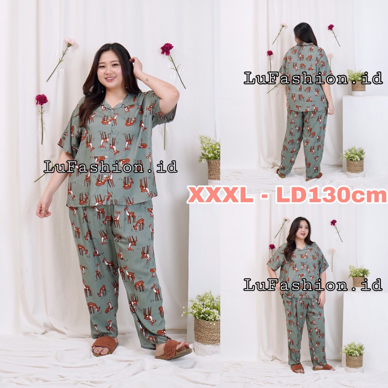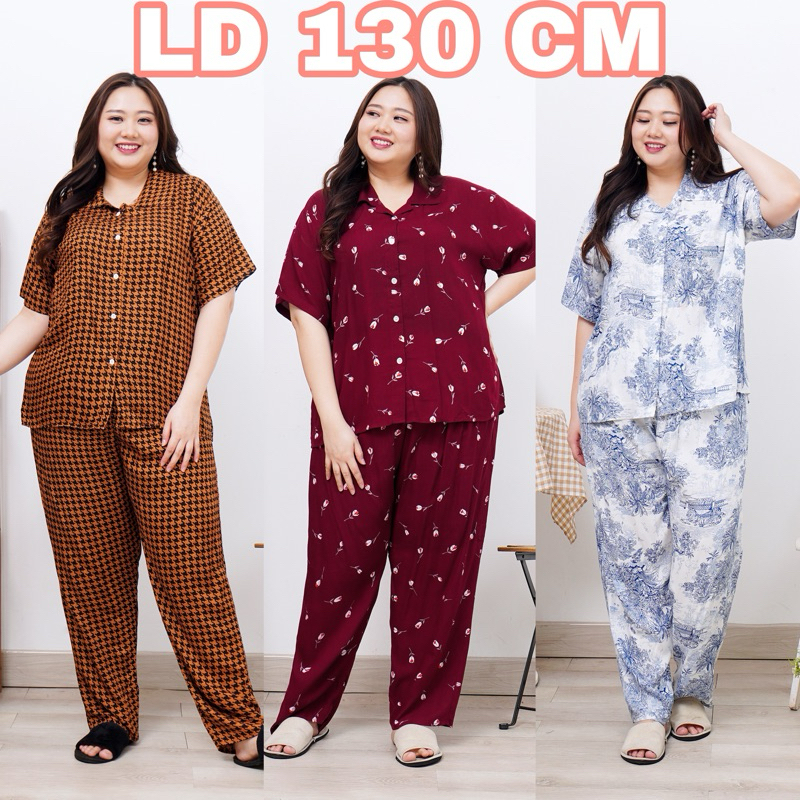 PIYAMA JUMBO LD 130 CM Piyama Lengan Pendek Celana Panjang Piyama Rayon Premium