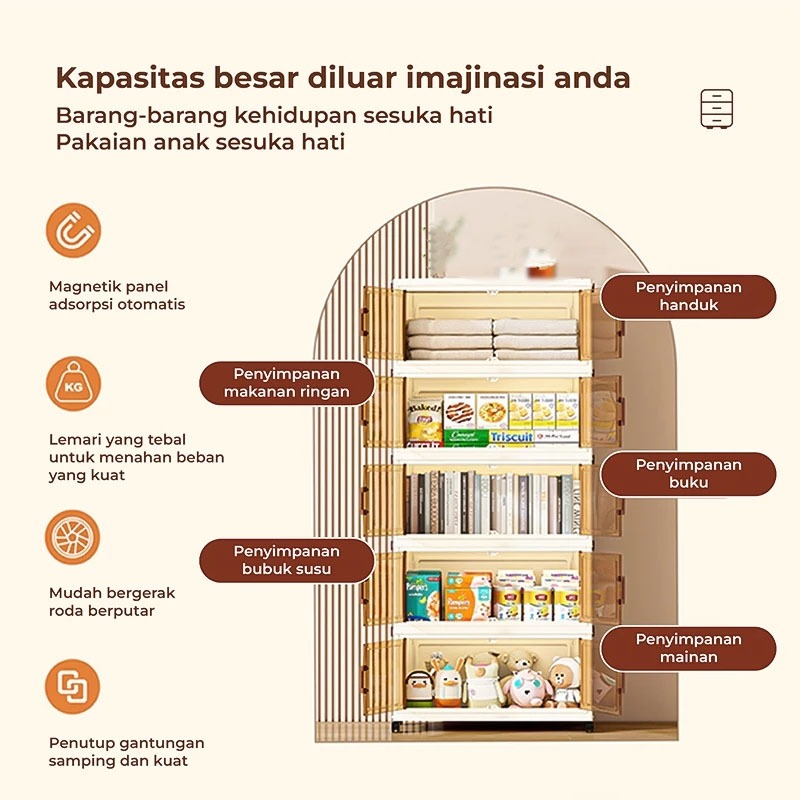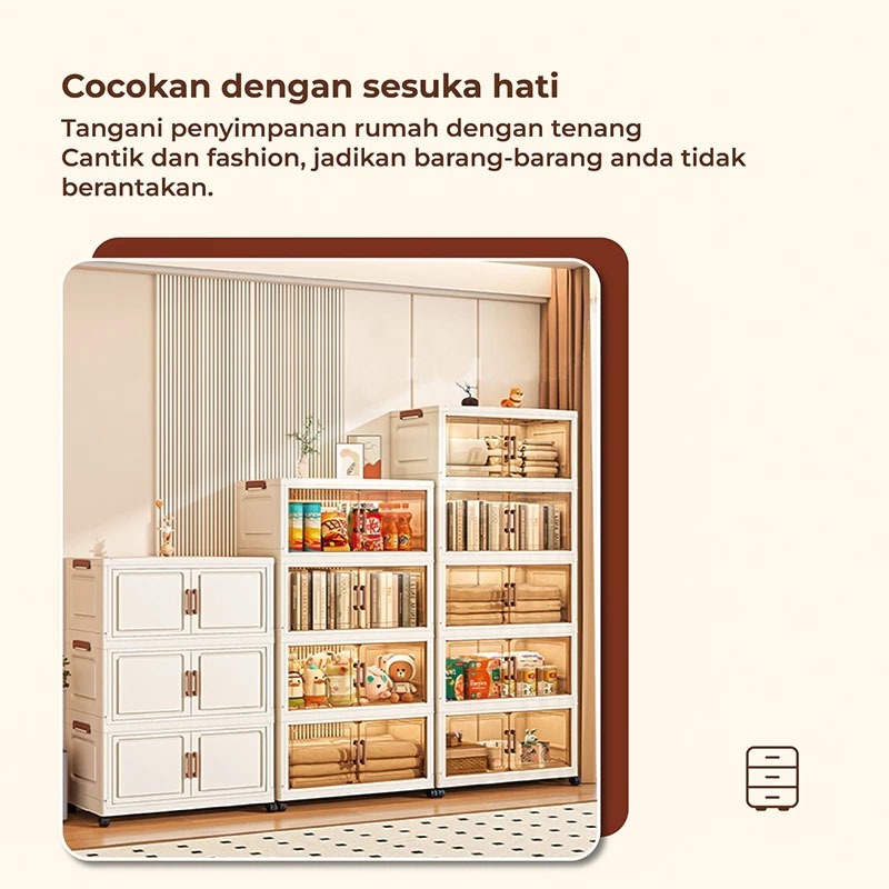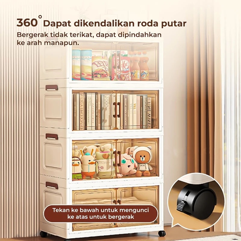 Cubbie Lemari pakaian plastik lemari penyimpanan lipat plastik roda senyap, kotak penyimpanan anti debu lemari plastik susun