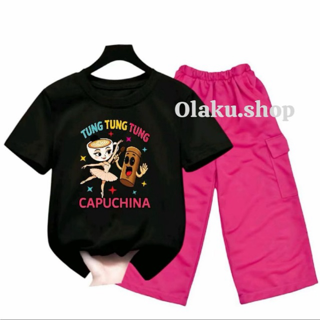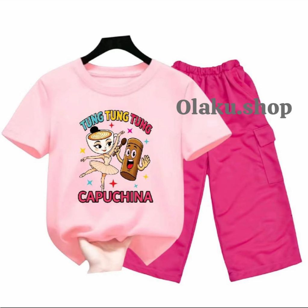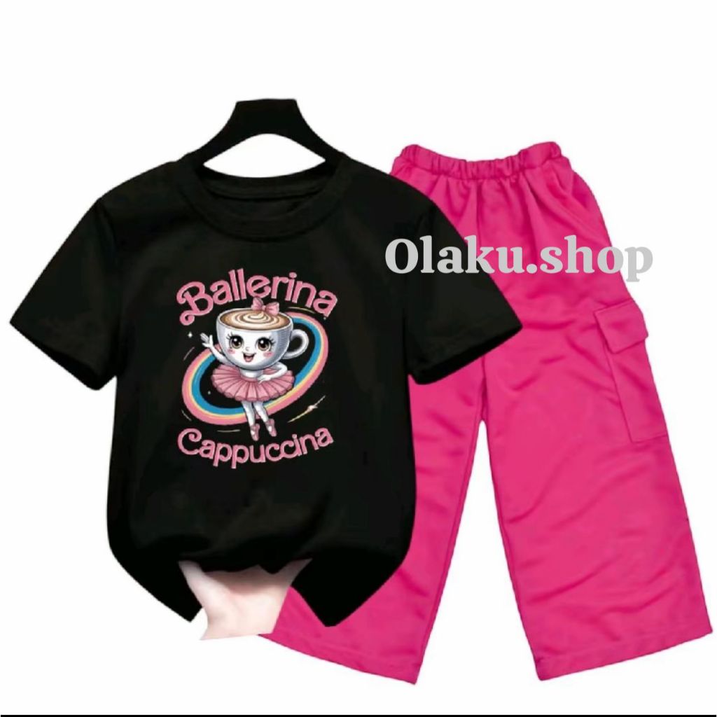 Setelan anak perempuan celana kargo motif BALLERINA CAPUCINA oneset anak perempuan viral 2025 fashion anak cewek terbaru