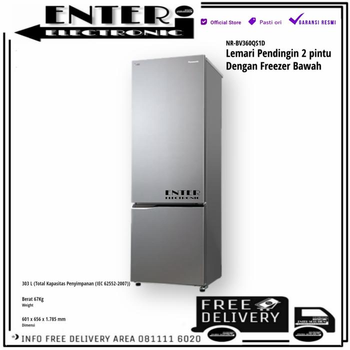 PANASONIC NR BV360QS1D - LEMARI ES BOTTOM FREEZER BAWAH INVERTER 358 L