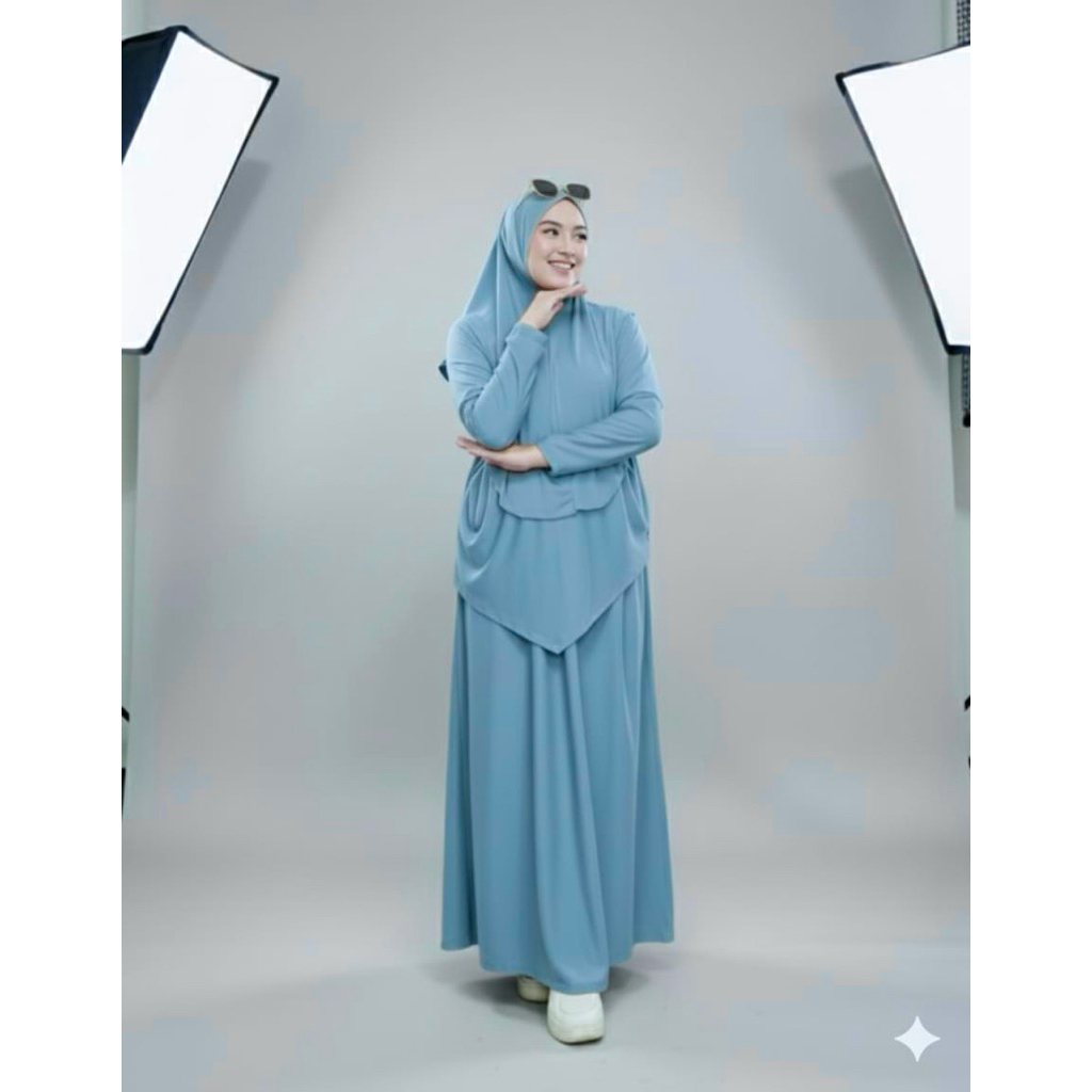 ONE SET 3in1 gamis celana hijab - gamis stelan kekinian - gamis stelan modis - STELAN BAJU OLAHRAGA SYAR'I MUSLIMAH