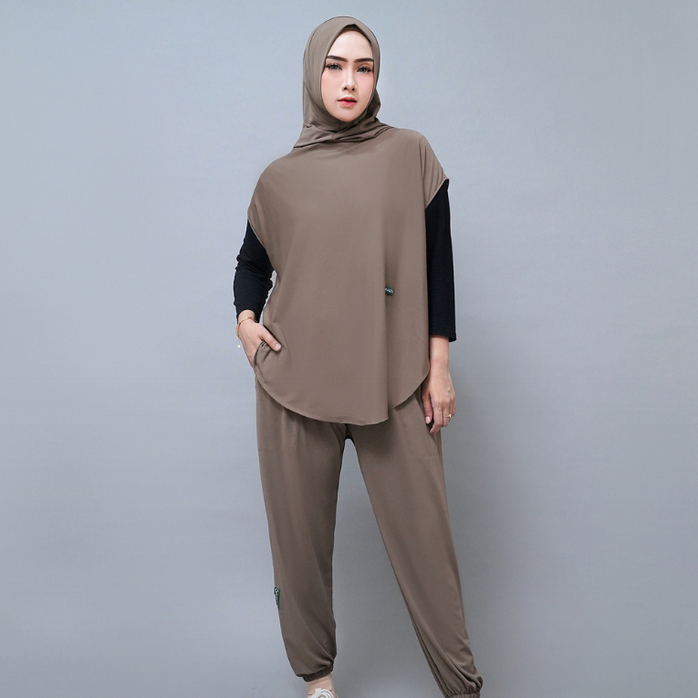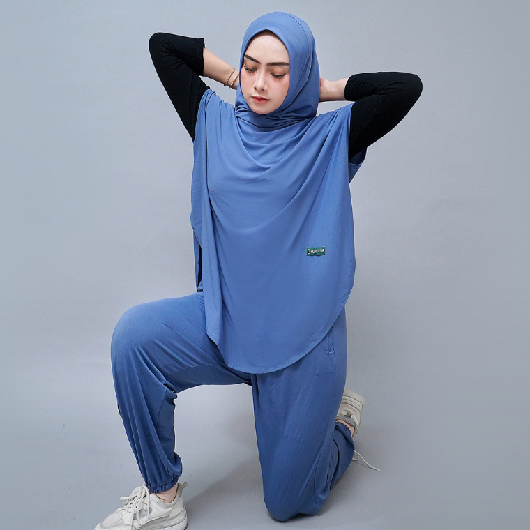 HIJACTIVE - Setelan Olahraga Jogging Senam Zumba Badminton Renang Wanita Muslimah Outer Hijab dan Celana Panjang Jersey Premium