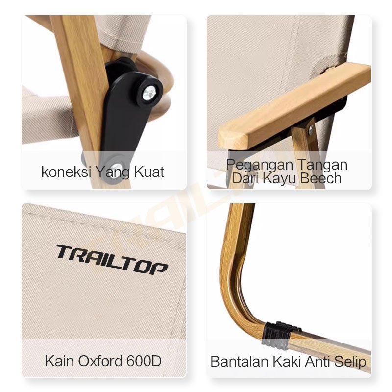 TrailTop Kursi Lipat Kermit Kursi Pantai Lipat Dengan Gagang Kayu Kursi Camping Beban 150kg